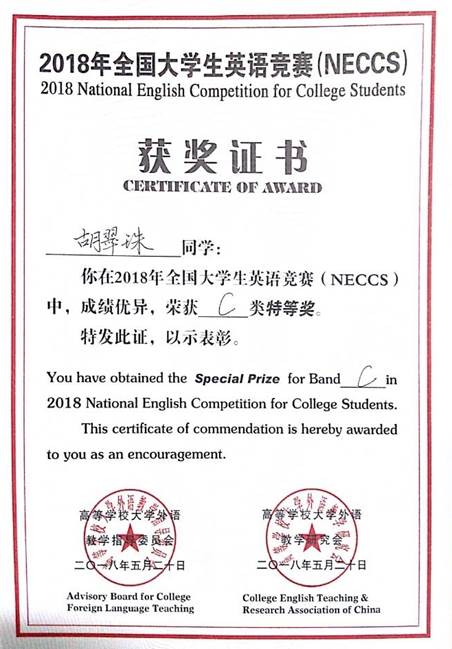 成功没有偶然,正是胡翠珠同学对英语日积月累的学习,以及对于自己心态的调整,才使她一路披荆斩棘,喜获佳绩!相信她的经验会对爱好英语的同学有所帮助。